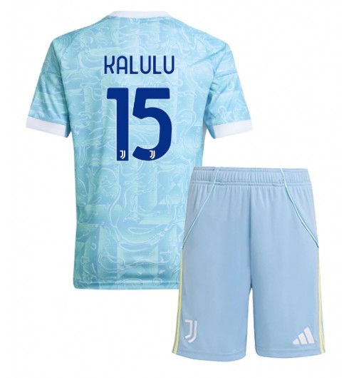 Juventus Pierre Kalulu #15 Venkovní dres pro děti 2025-26 Krátký Rukáv (+ trenýrky)